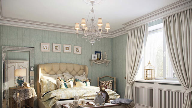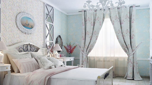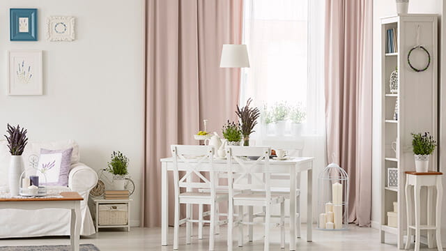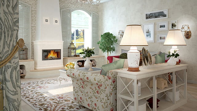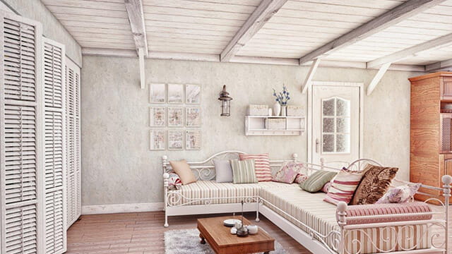 Лавандовый, мятный, бирюзовый цвета в интерьере оттеняются кипенной белизной или сливочным оттенком стен. Текстиль – только натуральный. Прохладный лен и хлопок создают настроение беззаботных каникул в деревне у бабушки, которое поддерживается обилием живых цветов и срезанных растений – лаванды, гортензии, анютиных глазок.
