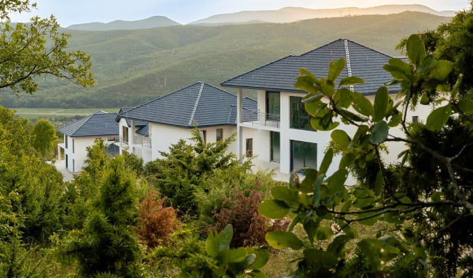 Если посмотреть на комплекс с высоты птичьего полета, можно непременно увидеть бескрайние изумрудные горизонты, потрясающую природную красоту, и, конечно же, то самое великолепие черепичных крыш!».