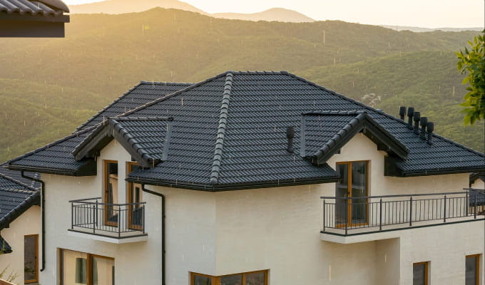 Авторы проекта рассказывают: «Единая архитектурная концепция реализована с применением надежных материалов высокого уровня. При выборе кровли мы ни на минуту не раздумывали, и безоговорочно приняли решение о применении натуральной. Черепичные крыши стали основным акцентом, приковывающим внимание. Натуральная черепица в полной мере отражает современный тренд на использование безопасных, природных и экологически чистых материалов и технологий, что особенно важно в условиях жаркого климата. Черепичная кровля стабилизирует крышу, гасит шум дождя, успешно противостоит ураганному ветру. Благодаря большой тепловой инерции, нагреваясь днем, долго отдает накопленное тепло даже ночью, создавая под кровлей воздушный поток, проветривающий и просушивающий конструкцию крыши. Таким свойством обладает только натуральная черепица. А применение не только рядового покрытия, но и необходимых кровельных аксессуаров и комплектующих элементов от производителя, делает кровлю красивой и функциональной, придавая особый статус объекту.