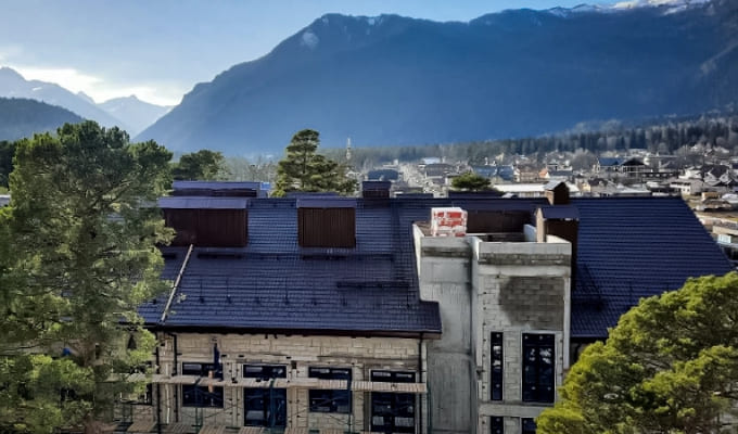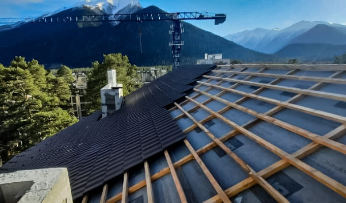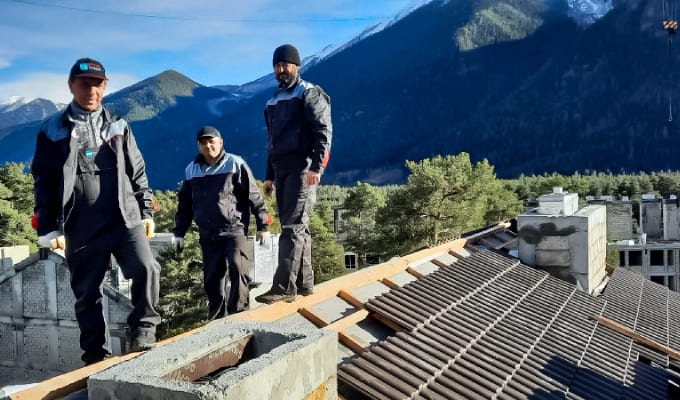 На строительной площадке ЖК «Горы здесь» завершена укладка черепицы на корпусе 4. Бригада кровельщиков приступила к работе над корпусом 3, где до конца ноября планируется закончить монтаж кровли. Часть освободившихся мастеров перейдет на корпус 6, площадь которого составляет 2,5 тыс. кв. м. На фронтонах уже залита опалубка, подготовлен и обработан пиломатериал.